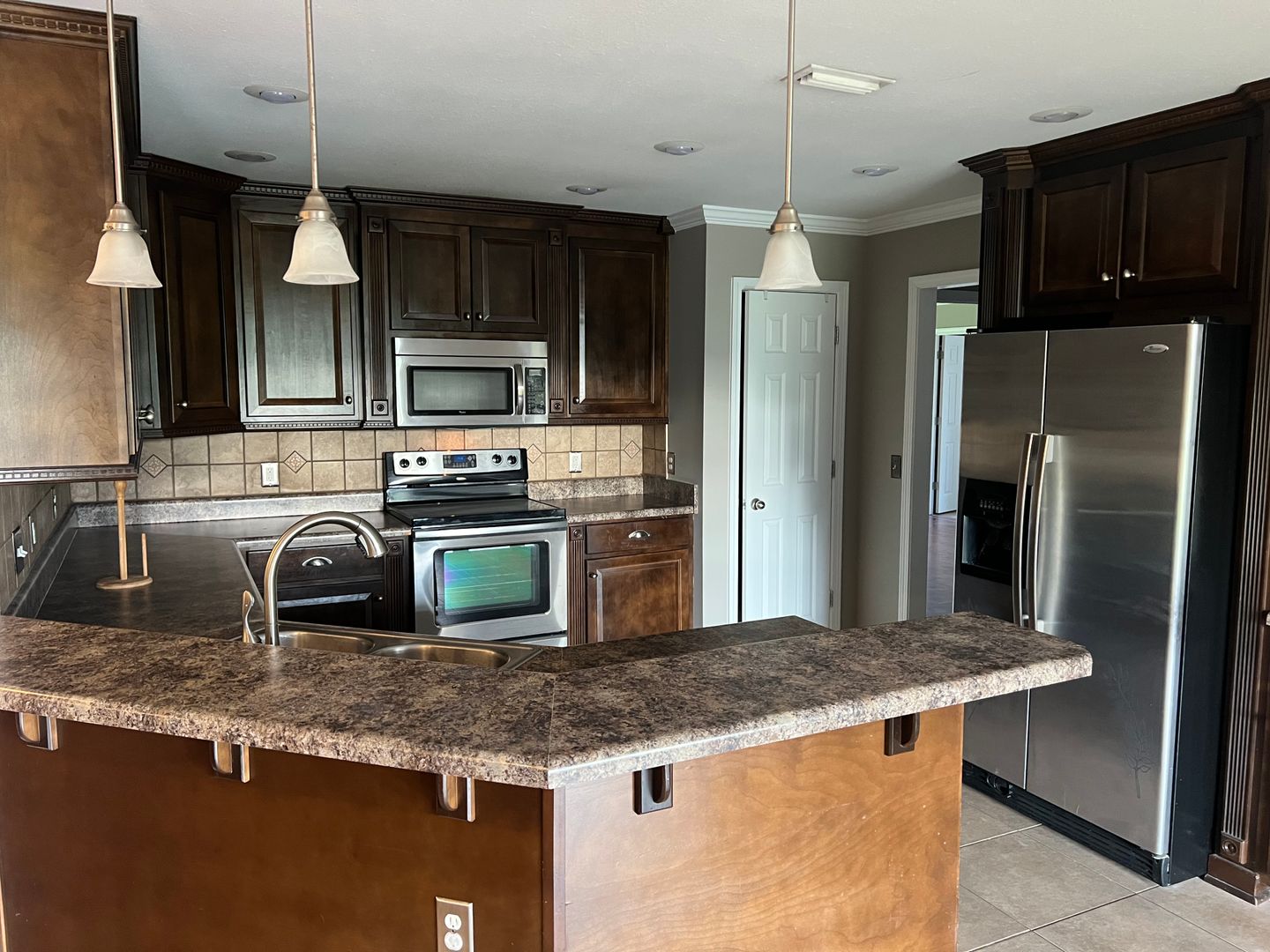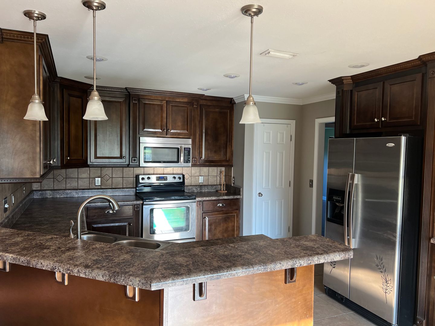 This charming residence offers the perfect blend of modern comforts and classic design. Boasting a freshly painted interior, this 4-bedroom, 2-bathroom home immediately captures attention with its well-maintained appearance and welcoming curb appeal. The main living area features a gas fireplace, providing a cozy ambiance. The open-concept layout seamlessly connects the living space to the kitchen and dining areas. The kitchen is a culinary enthusiast's dream, showcasing sleek stainless steel appliances, including a smooth top stove that adds a touch of contemporary elegance. One of the standout features of this home is the split floor plan, which offers privacy and comfort for all residents. The main bedroom, situated away from the secondary bedrooms, provides a peaceful retreat with an attached en-suite bathroom. The en-suite bathroom offers both modern fixtures and finishes. Three additional bedrooms provide versatile space for family members, guests, or home offices. The two-car garage offers both parking convenience and extra storage options.
